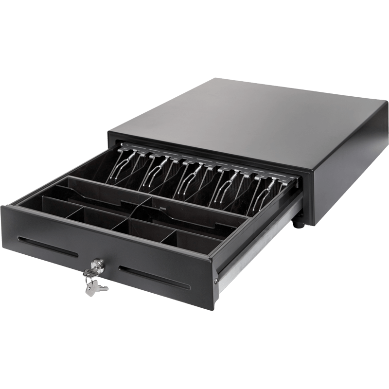 Пять классических прямоугольных и две горизонтальные ячейки для купюр, три/четыре широких отделения с покатым краем для монет. Отделения для банкнот оснащены металлическими фиксаторами и регулируются до необходимого размера. Два дополнительных отсека доступны с передней панели: один располагается под монетницей, а второй в металлическом поддоне.