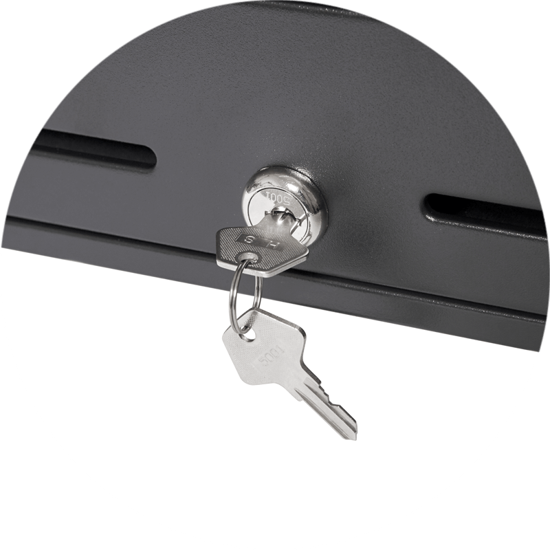 Электромеханический трёхпозиционный замок рассчитан на 1 000 000 циклов открытия и предполагает 200 комбинаций ключей.