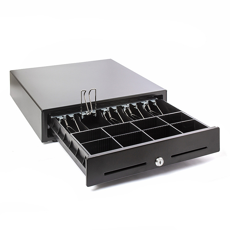 POScenter 16MK - классический механический денежный ящик, размеры которого позволяют использовать его как в небольших розничных магазинах, так и в довольно крупных супермаркетах. Металлический корпус обеспечивает надежную защиту денег от влияния внешней среды, а механический замок разработан по особой технологии, защищающей от взлома. 5 отделений для купюр со стальными зажимами и 8 отсеков для монет достаточно, чтобы разместить довольно большие суммы и быстро найти деньги для сдачи или пересчитать и подготовить выручку.